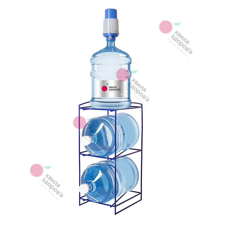 Металлическая подставка для бутилированной воды, синего цвета, изготовлена из прочного прутка. Предназначена для хранения 2 бутылей с водой, объемом 18,9 л. Удобно размещать на стойке пустые баллоны. Компактная, прочная, экономичная конструкция. Как вариант, сверху можно расположить диспенсер или настольный кулер. Данную модель подставки покупают офисы, учреждения, кафе, рестораны, используют в домашних условиях.