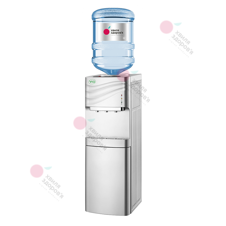 Кулер ViO має верхній тип завантаження бутля, завдяки чому можна стежити за рівнем води і вчасно міняти. Крім того, кулер оснащений трьома видами води: гарячою, холодною і кімнатної температури, подача якої здійснюється за допомогою натискання на кнопку на верхній панелі.