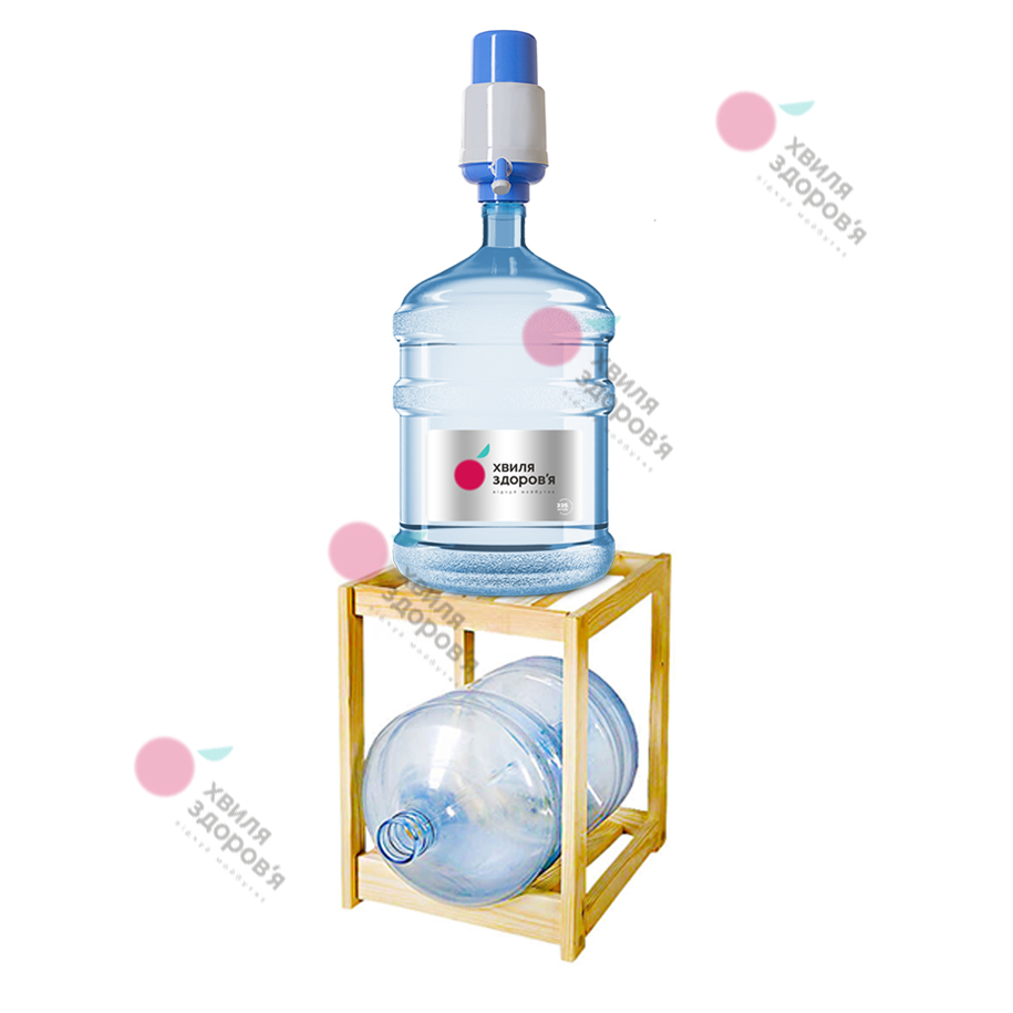 Підставка виконана з дерева у прямокутній формі, низька. Можна розмістити 1 бутиль стандартного 18,9 л розміру, зверху полиці поставити диспенсер з водою або бутиль з помпою. Дуже компактна та стійка. Колір – бук. Розміри (висота, ширина, довжина) – 46 х 33 х 37 см.