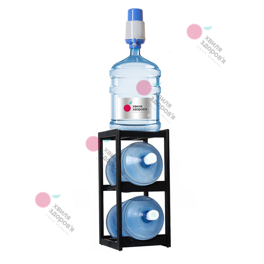 Полиця дерев`яна під 2 бутлі об`ємом 18,9 л, Виконана в прямокутній формі. Колір –венге. Розміри (висота, ширина, довжина) – 80 х 33 х 7 см. Зверху дерев’яної підставки WS-2 можна встановити бутиль з помпою, диспенсер або настільний кулер для зручності користування, а в нішах зберігати повні та порожні пляшки. Матеріал полиці пройшов процес брашування, що допомогло зберегти структуру деревини. Тонування виконано за допомогою спеціального лаку, який захищає підставку від зовнішніх впливів.